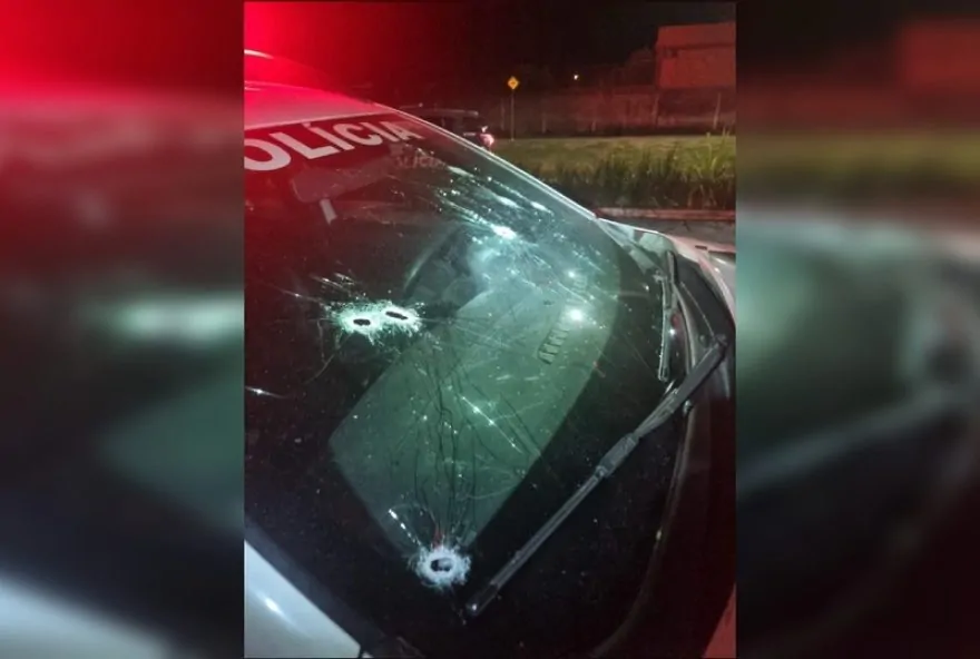 Uma viatura da Polícia Militar foi alvejada por tiros de fuzil na Avenida Manoel Vieira, em Araçoiaba da Serra (SP), na madrugada desta terça-feira (26). Os dois policiais que estavam no carro ficaram feridos.