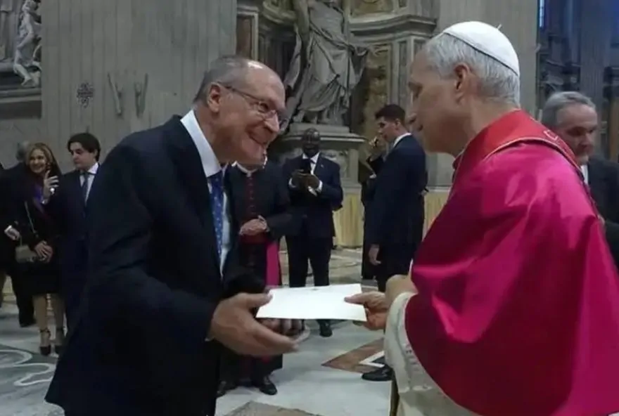 A entrega aconteceu após a missa inaugural do pontificado de Leão XIV, neste domingo (18), no Vaticano. O vice-presidente representou o Brasil neste momento. O encontro entre Alckmin e o papa foi breve. O vice cumprimentou Leão XIV e beijou a mão do papa.