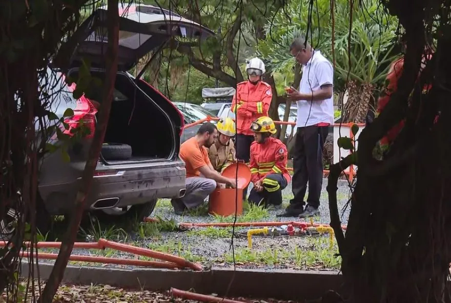 A empresa responsável pela estação de gás está no local para fazer os reparos. De acordo com os bombeiros, não há risco de explosão. Outros dois veículos foram atingidos.