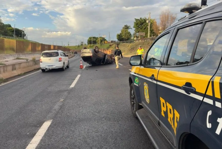 O automóvel capotou ao tentar fazer uma curva na BR-376 em Mandaguaçu, e o motorista fugiu do carro. Um capotamento foi observado na tarde desta quinta-feira (16), no quilômetro 157 da BR-376, em Mandaguaçu, no norte do Paraná.