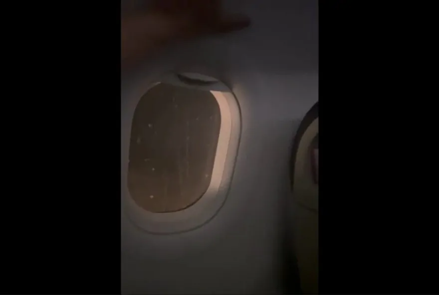 Nas imagens, o passageiro próximo à janela se segura na poltrona à frente dele.