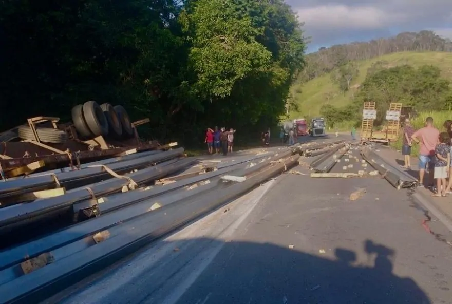 Um incidente impressionante interditou a BR-381, na altura do km 369, em São Gonçalo do Rio Abaixo, região central de Minas Gerais, nesta sexta-feira (28). O fato envolveu uma carreta, um caminhão e uma câmera acoplada na cabine do veículo que seguia em sentido oposto e acabou registrando a cena do acidente. A carreta tombou e a carga de vigas metálicas se espalhou pela pista, causando um grande susto a todos os envolvidos, porém, o motorista conseguiu parar o veículo. Segundo as autoridades, o condutor da carreta teve apenas escoriações leves.