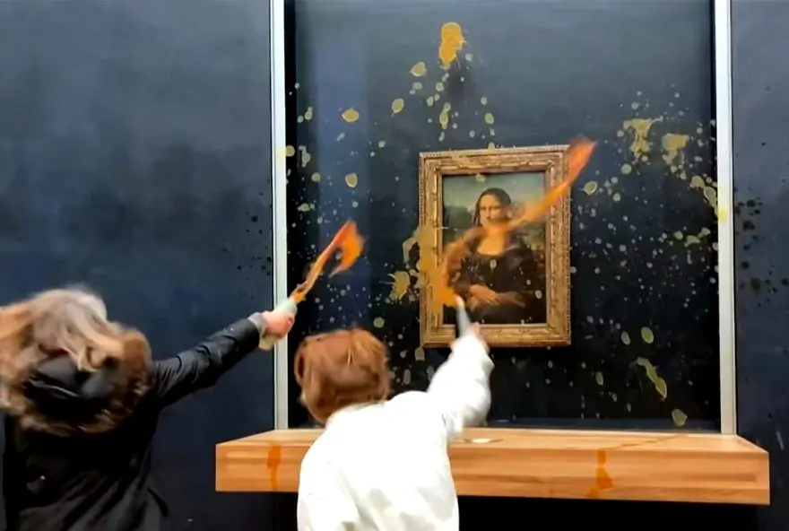 Protesto no Louvre: Ativistas lançam sopa na Mona Lisa, mas vidro blindado impede danos