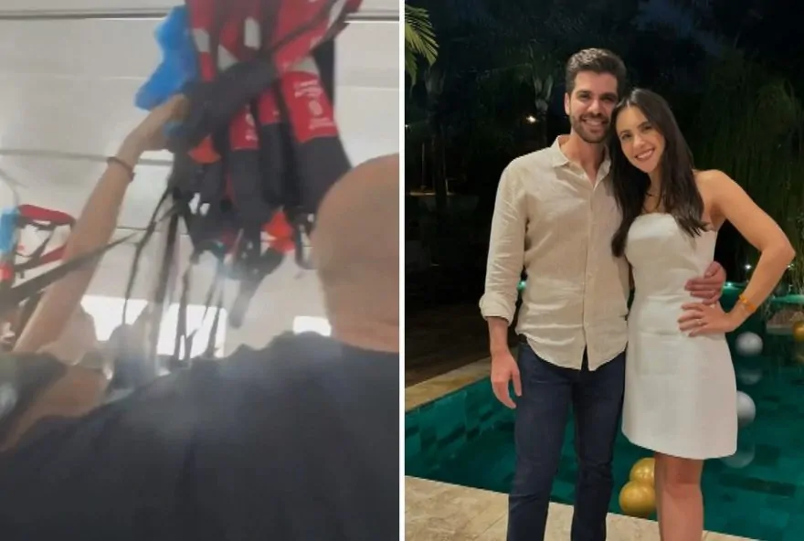 Após o casal cair no mar, os coletes deles não inflaram e não foi possível enchê-los. “Na hora que a gente saiu do barco, começamos a nadar e achamos um colete solto. Conseguimos segurar esse colete e boiamos nele, esse colete aguentou nós dois”, narrou. De acordo com o médico, a tripulação ficou cerca de 30 a 40 minutos até um barco chegar para buscá-los.
