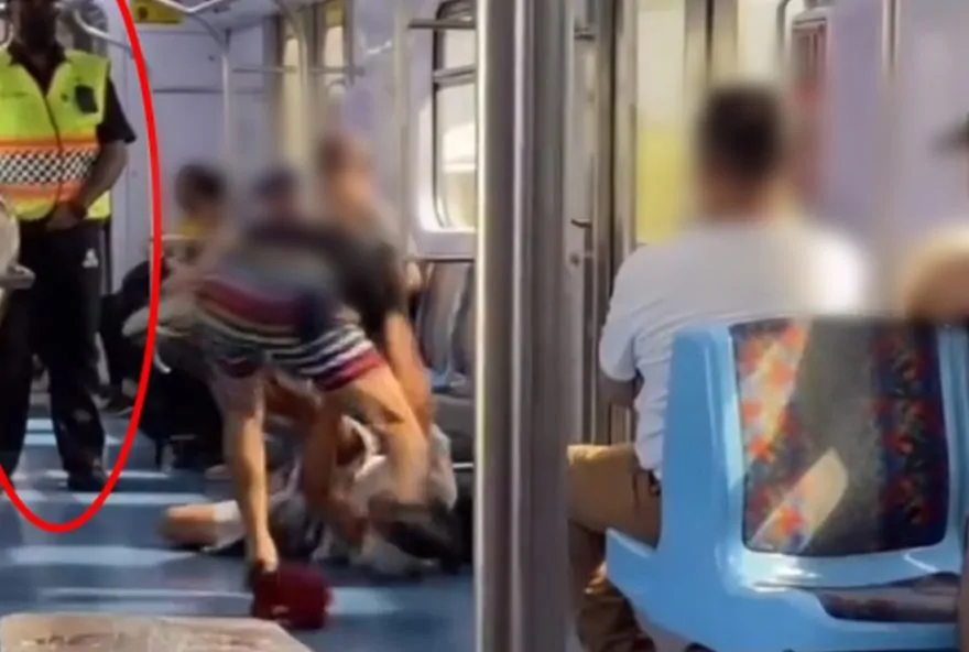 A situação foi registrada em vídeo e mostra dois homens envolvidos em um desentendimento dentro do trem. Enquanto um dos passageiros empurra o outro, os seguranças, vestidos com coletes amarelos fluorescentes, permanecem passivos e apenas observam a briga. Em certo momento, um dos vigilantes parece mexer em um celular, enquanto o outro se segura em uma barra de apoio do vagão.