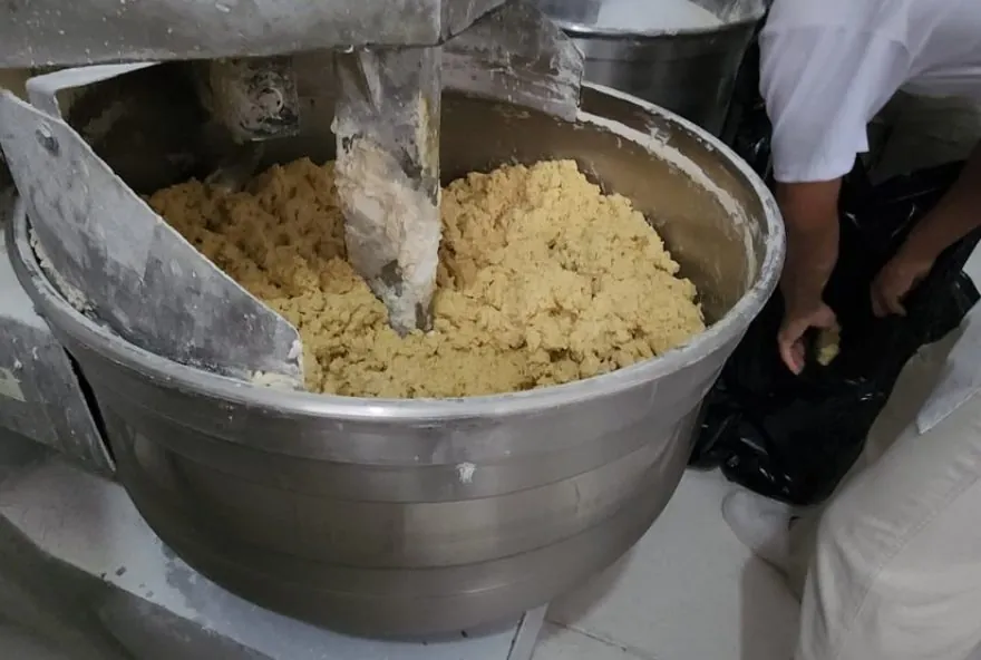 Na ação, foram descartados seis sacos de 50 litros de massa que eram processados no momento da fiscalização, além de seis sacos de farinha vencidos.