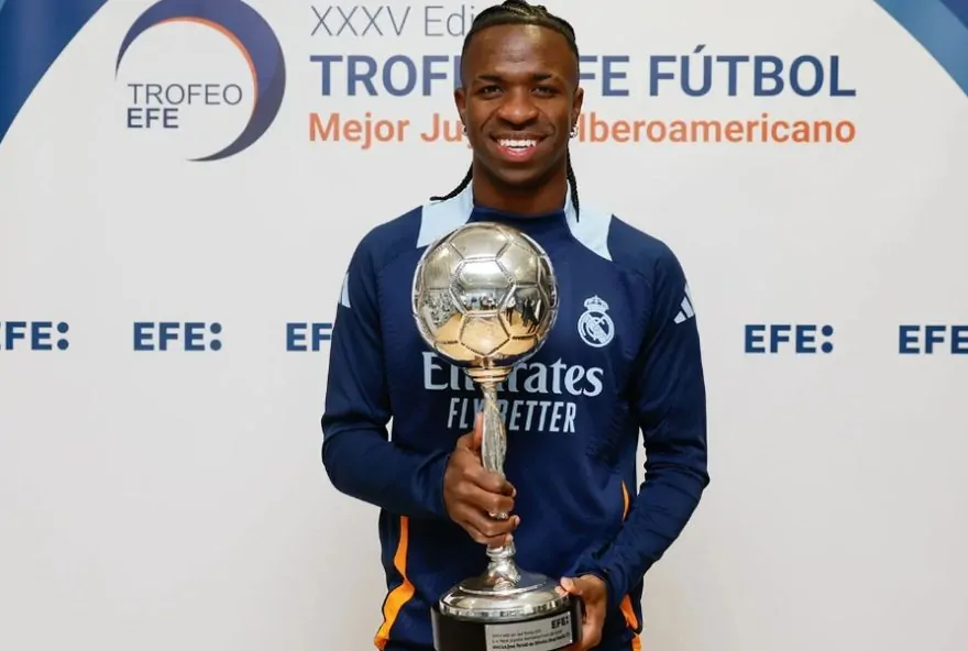 Vinicius Junior, do Real Madrid, é premiado Melhor Jogador Iberoamericano de 2024 pela EFE
