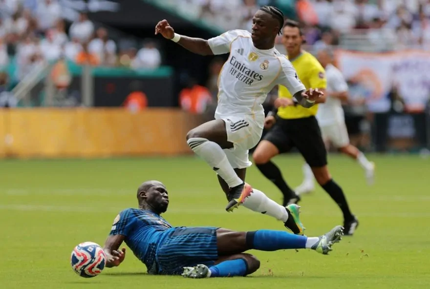 No confronto entre Real Madrid e Al-Hilal, pela estreia dos times na Copa do Mundo de Clubes, Vinicius Júnior foi punido com um cartão amarelo por simulação logo no início da partida. O lance ocorreu aos 14 minutos do primeiro tempo, quando o atacante tentou driblar o zagueiro e foi ao chão na entrada da área. A decisão do árbitro em mostrar o cartão amarelo desagradou o jogador do Real Madrid, que demonstrou irritação com a punição.