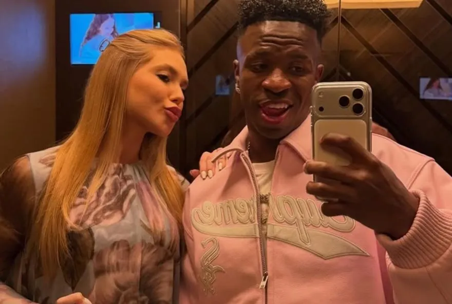 Vini Jr. e sua família estão reunidos em Goiânia para celebrar o Natal com Virginia Fonseca. O jogador do Real Madrid chegou ao Brasil na última segunda-feira (22/12) e aproveitou a ocasião para passar um tempo de qualidade ao lado de sua namorada. Os dois foram vistos posando abraçados em uma foto compartilhada nos stories do Instagram da influenciadora. Na legenda, apenas um coração pegando fogo foi adicionado, mostrando a cumplicidade do casal. Virginia Fonseca também anunciou que irá passar o Ano Novo na Europa ao lado de Vini Jr., compartilhando os preparativos nas redes sociais. Em um dos stories, a influenciadora experimentava um casaco superpeludo na cor off-white, demonstrando seu entusiasmo mesmo com as baixas temperaturas europeias. Em Madri, onde o jogador atua, o inverno é marcado por temperaturas que variam entre 1°C e 11°C durante o dia, chegando a mínimas próximas ou abaixo de 0°C durante a noite. Este será o primeiro Ano Novo que o casal passará junto, após assumirem o relacionamento em outubro. Virginia tem dividido seu tempo entre o Brasil e a Espanha, acompanhando o jogador do Real Madrid em seus compromissos.