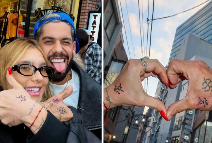 O casal, formado pela influenciadora Virginia Fonseca, 26, e pelo cantor Zé Felipe, 27, decidiu eternizar sua viagem ao Japão com tatuagens iguais nas mãos. A viagem fazia parte das celebrações pelo aniversário do artista, que embarcou para o continente asiático ao lado de sua esposa no último domingo (20).