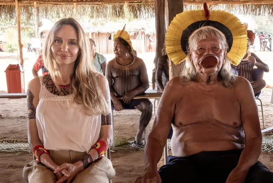 Dois dias antes da visita presidencial, a atriz e ativista Angelina Jolie esteve na mesma aldeia, onde se encontrou com o cacique Raoni e outras lideranças Kayapó. Ela viajou ao Xingu com a organização Re:wild para discutir temas como desmatamento, garimpo ilegal e ameaças às terras indígenas. Jolie expressou apoio à proteção da Amazônia e à preservação das culturas originárias.