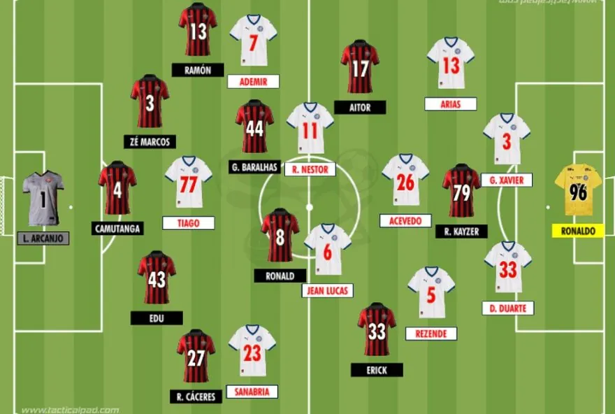 Thiago Carpini não teve o zagueiro Lucas Halter. Edu o substituiu no trio de zaga. Ramon voltou de suspensão na ala-esquerda e a base das últimas partidas foi mantida.