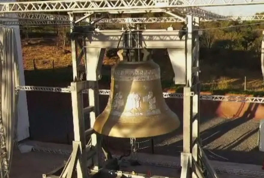 Maior sino que badala do mundo toca pela 1ª vez em Trindade; vídeo