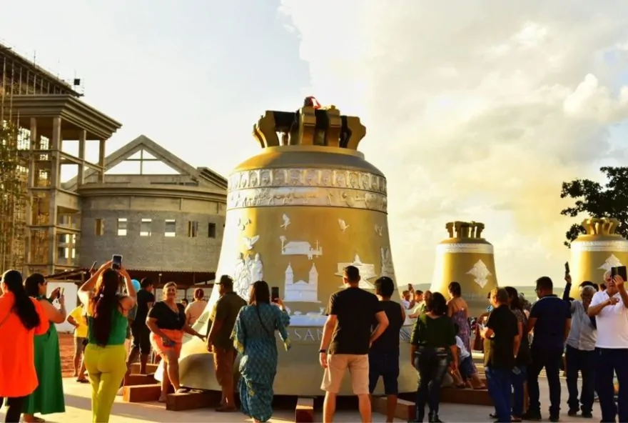 O maior sino que badala do mundo, chamado Vox Patris, chegou ao seu destino final em Trindade no dia 1° de junho. Recebido com grande demonstração de fé por parte dos devotos, o sino agora ocupará seu lugar na construção do novo santuário dedicado ao Divino Pai Eterno, na Região Metropolitana de Goiânia. Com impressionantes 4 metros de altura e 55 toneladas, o Vox Patris conta com detalhes que contam a história da devoção, trazendo consigo uma simbologia que remonta aos primórdios da igreja: o chamado à oração.