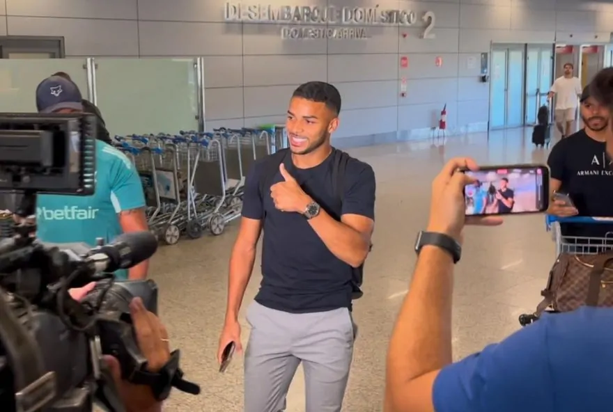 O atacante Wanderson desembarcou no Aeroporto Internacional de Belo Horizonte, em Confins, na manhã desta sexta-feira. O jogador fará exames médicos e assinará contrato até dezembro de 2027 com o Cruzeiro.