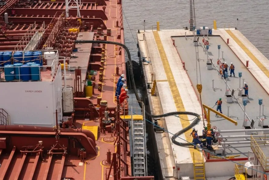 Norte, os navios carregados de derivados de petróleo transferem a carga para